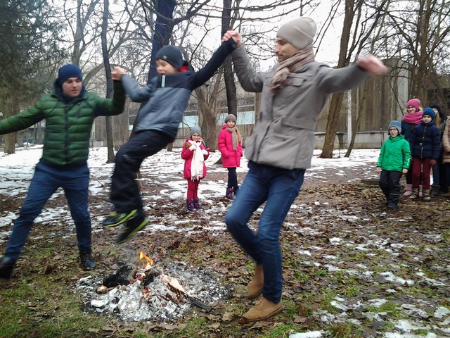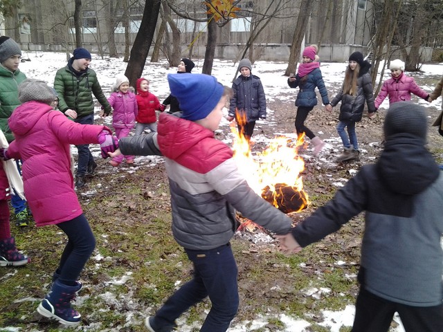 Продолжение Масленичных гуляний: зимние народные игрища, х ороводы с песнями и плясками, прыжки через костер, загадывание желаний на колесе прощаний с зимой.